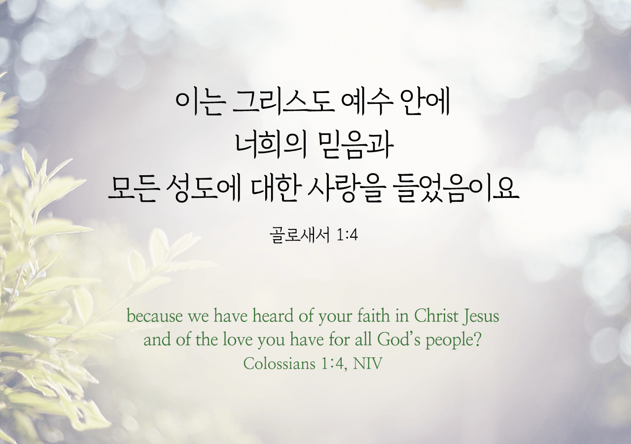 “이는 그리스도 예수 안에 너희의 믿음과 모든 성도에 대한 사랑을 들었음이요”