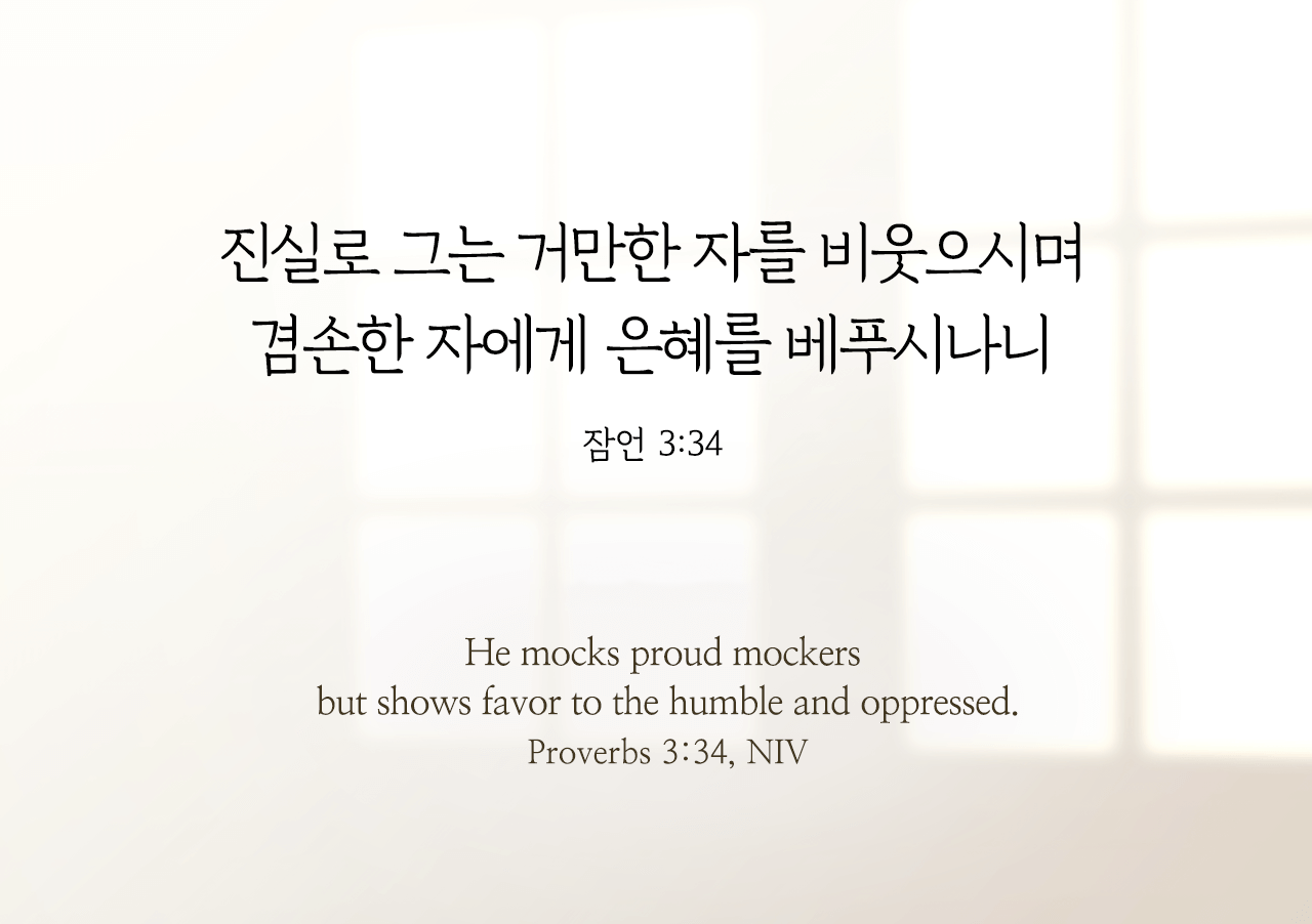 잠언 3장 34절 말씀 묵상 - 겸손한 자에게 임하는 은혜