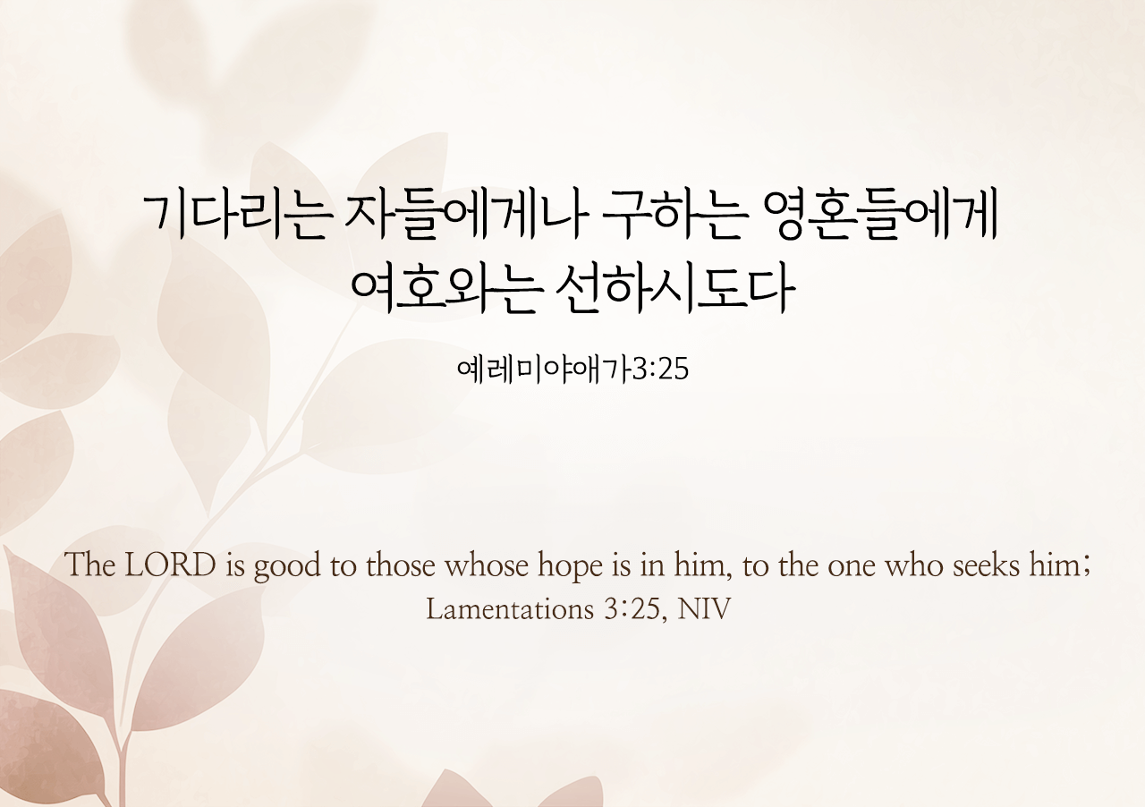예레미야애가 3장 25절 말씀 묵상 - 소망을 품은 기다림의 복