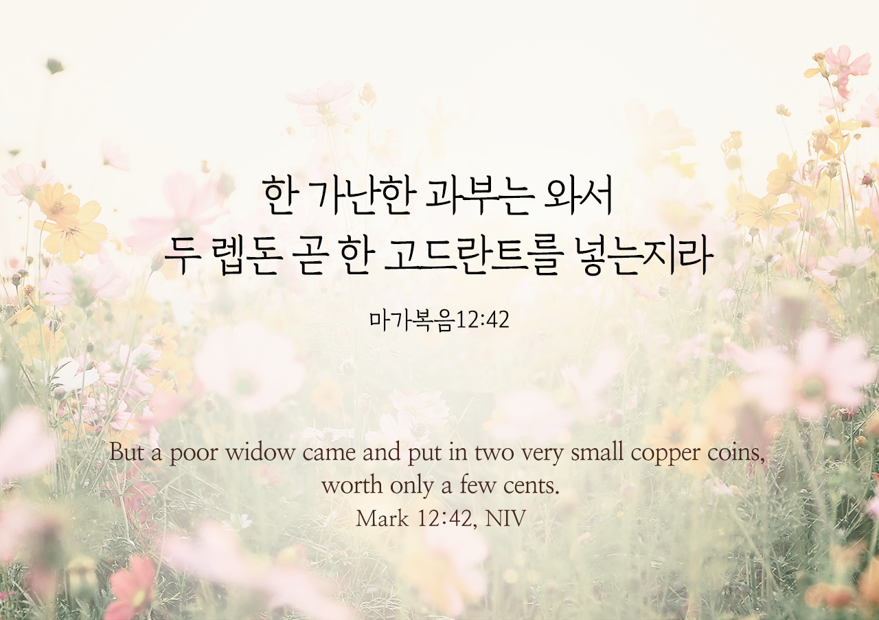 "한 가난한 과부는 와서 두 렙돈 곧 한 고드란트를 넣는지라"