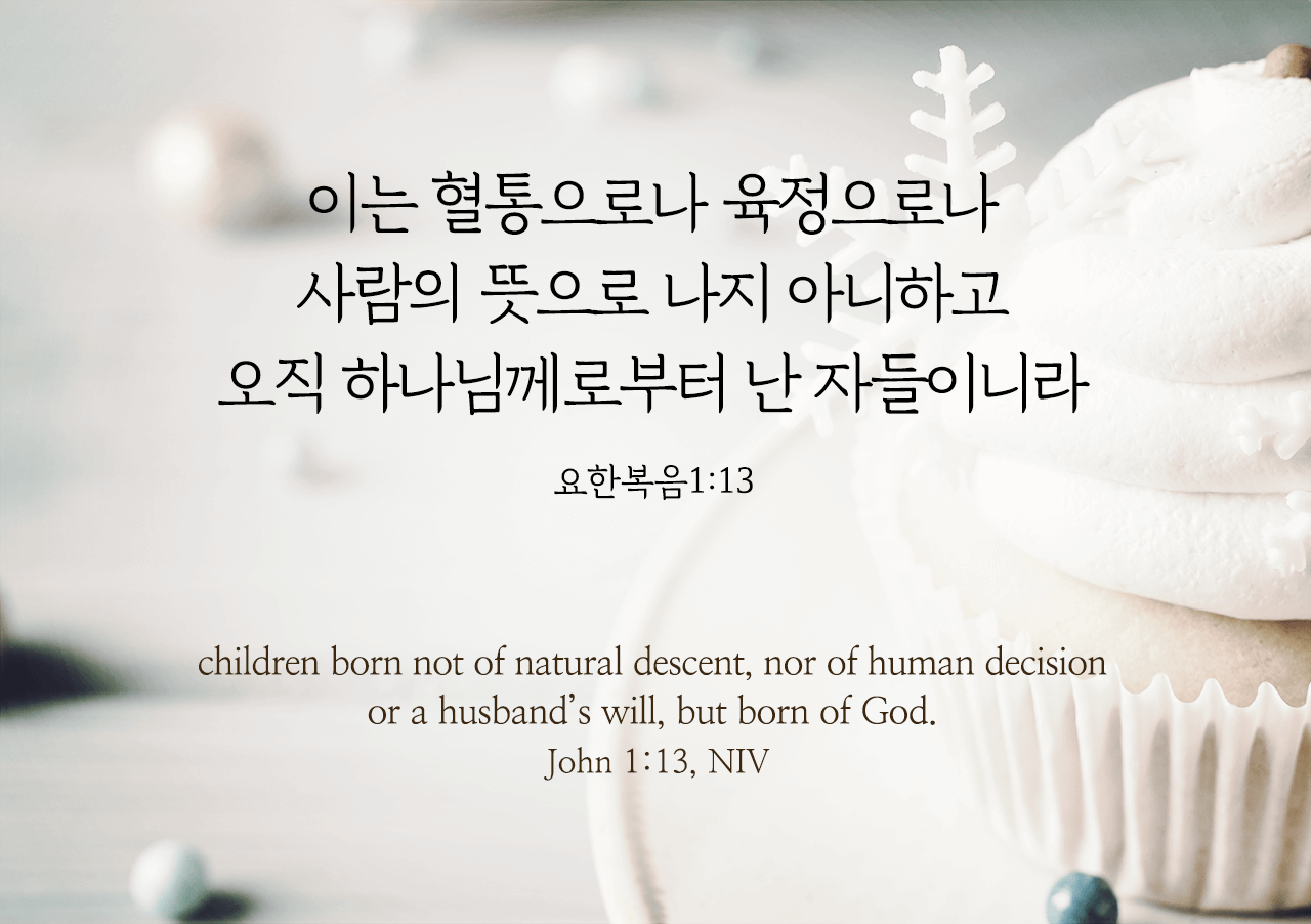 요한복음 1장 13절은 우리를 겸손하게 하고 동시에 담대하게 한다. 겸손한 이유는 이 생명이 전적으로 하나님께로부터 왔기 때문이다. 담대한 이유는 그 하나님이 우리 삶의 시작과 끝을 책임지시기 때문이다. 하나님께로부터 난 사람은 다시 세상에 의해 규정되지 않는다. 오늘도 그 은혜의 출발선 위에 서서, 하나님의 자녀답게 살아가야 한다.