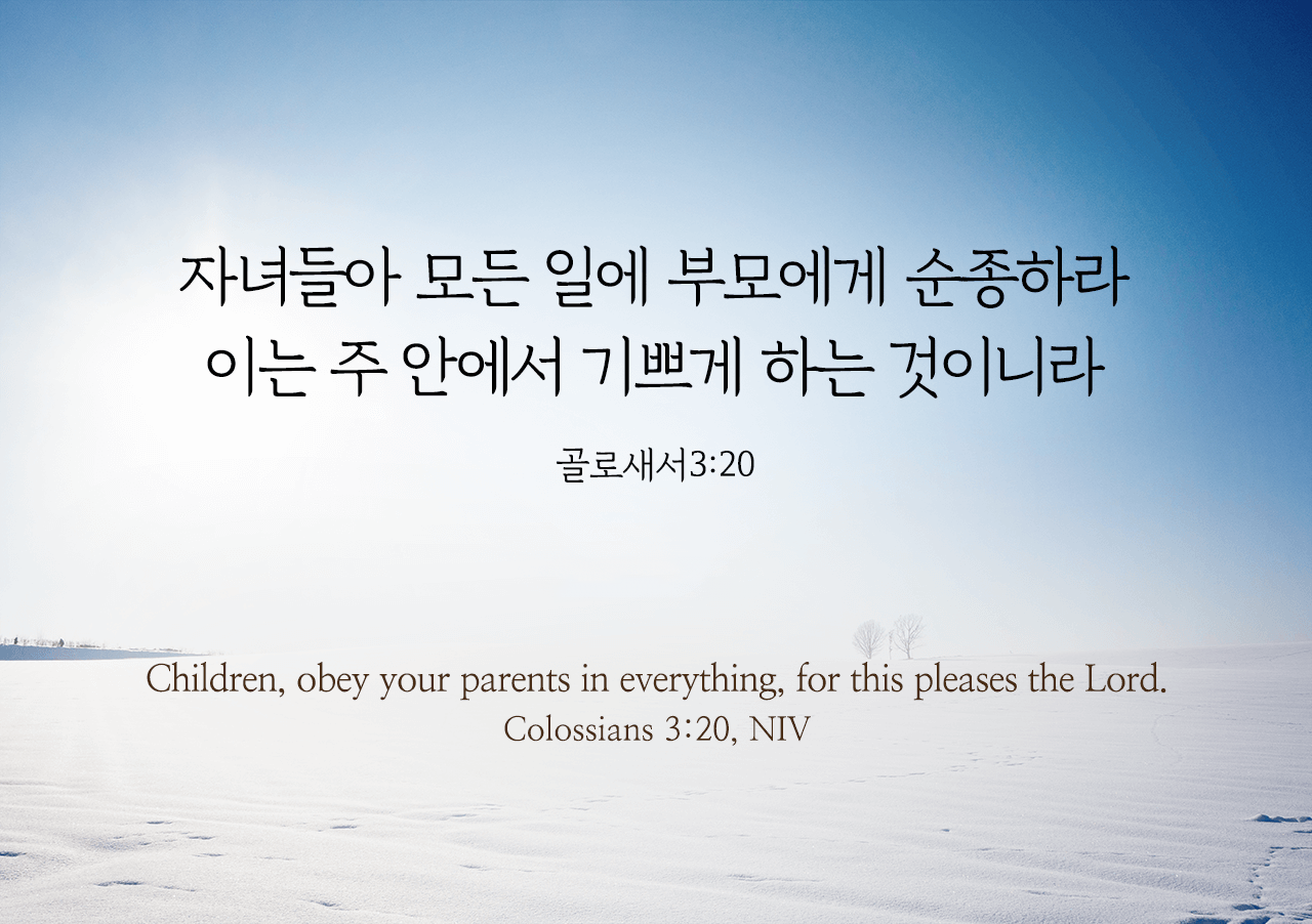 "자녀들아 모든 일에 부모에게 순종하라 이는 주 안에서 기쁘게 하는 것이니라"
