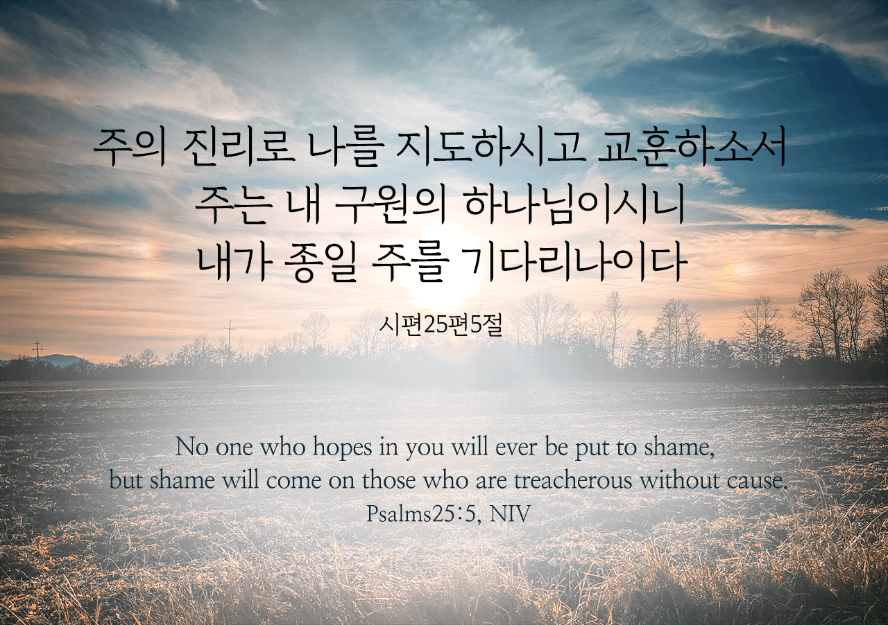 "주의 진리로 나를 지도하시고 교훈하소서 주는 내 구원의 하나님이시니 내가 종일 주를 기다리나이다"