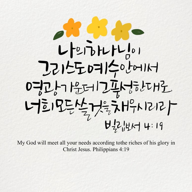 "나의 하나님이 그리스도 예수 안에서 영광 가운데 그 풍성한 대로 너희 모든 쓸 것을 채우시리라"