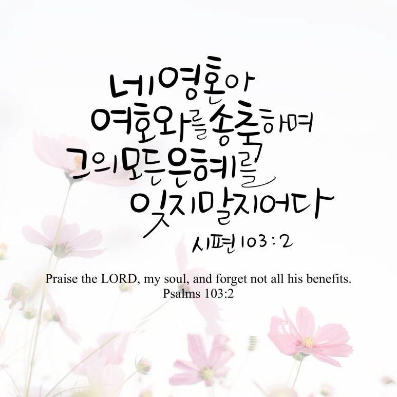 "내 영혼아 여호와를 송축하며 그의 모든 은택을 잊지 말지어다"
