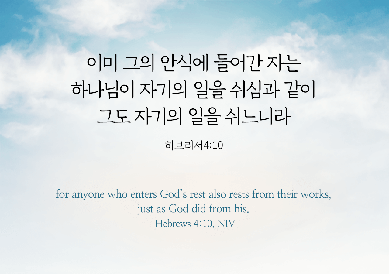 "이미 그의 안식에 들어간 자는 하나님이 자기의 일을 쉬심과 같이 그도 자기의 일을 쉬느니라"