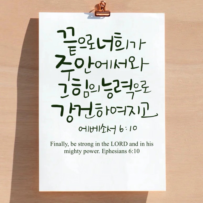 마지막으로, 이 강건함은 실천으로 이어져야 한다. 주 안에서 강건해지라는 말은 수동적이지 않다. 우리는 적극적으로 주님을 의지한다. 영적 훈련을 통해 근력을 키운다. 예배, 봉사, 전도 등이 그 방법이다. 세상의 가치가 흔들릴 때, 우리는 주님의 힘으로 서 있다. 이 힘은 우리의 삶을 변화시킨다. 약한 자가 강해지고, 낙심한 자가 소망을 얻는다. 주 안에서 강건해지면, 우리는 승리한다. 이 구절은 우리에게 영원한 약속이다. 주님의 능력으로 우리는 모든 것을 이긴다.