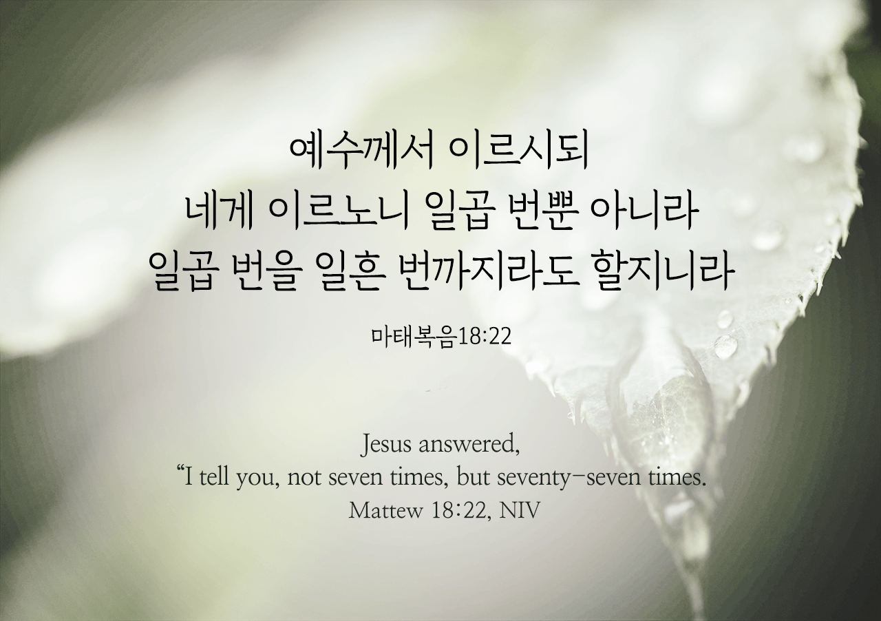“예수께서 이르시되 네게 이르노니 일곱 번뿐 아니라 일곱 번을 일흔 번까지라도 할지니라”