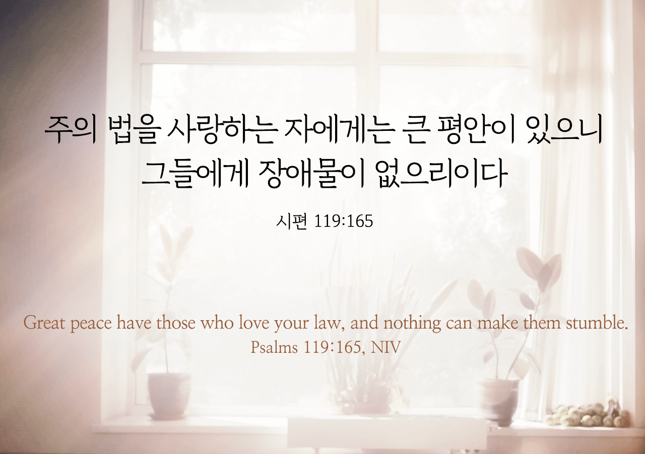 "주의 법을 사랑하는 자에게는 큰 평안이 있으니 그들에게 장애물이 없으리이다"