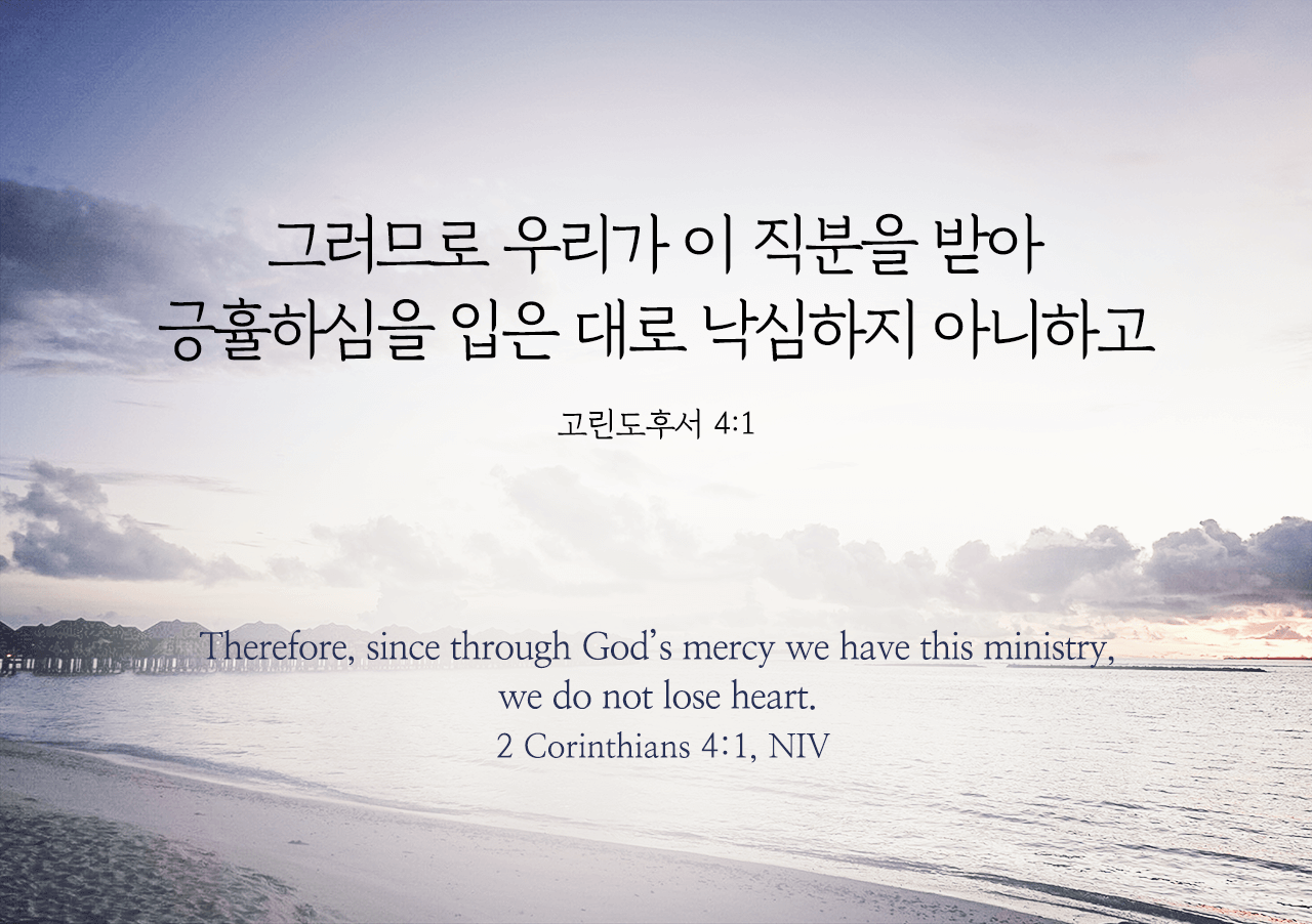"그러므로 우리가 이 직분을 받아 긍휼하심을 입은 대로 낙심하지 아니하고"
