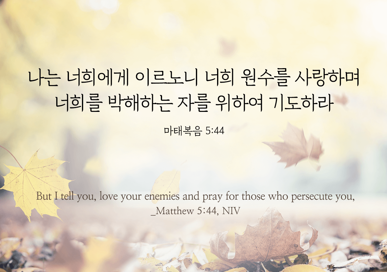 "나는 너희에게 이르노니 너희 원수를 사랑하며 너희를 박해하는 자를 위하여 기도하라"