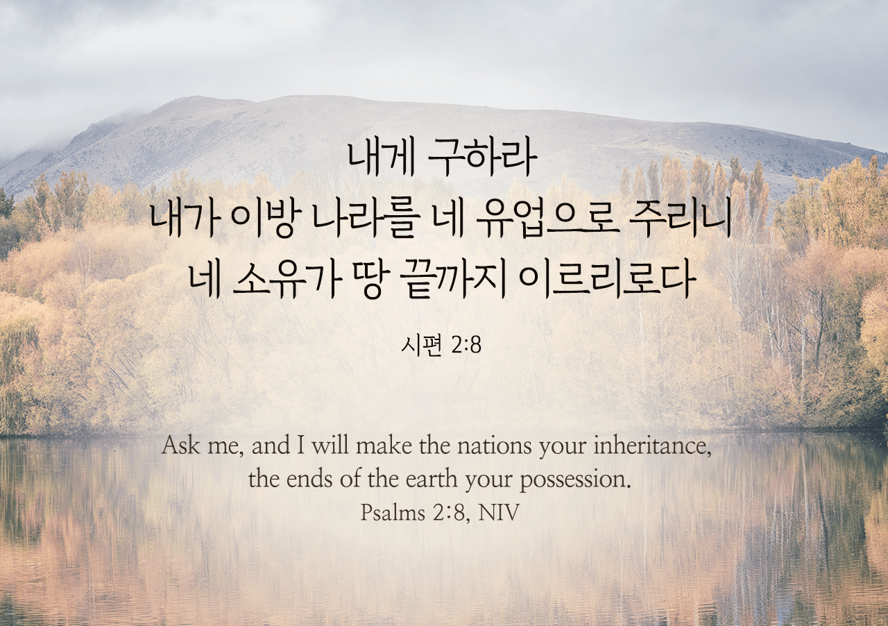 "내게 구하라 내가 이방 나라를 네 유업으로 주리니 네 소유가 땅 끝까지 이르리로다"