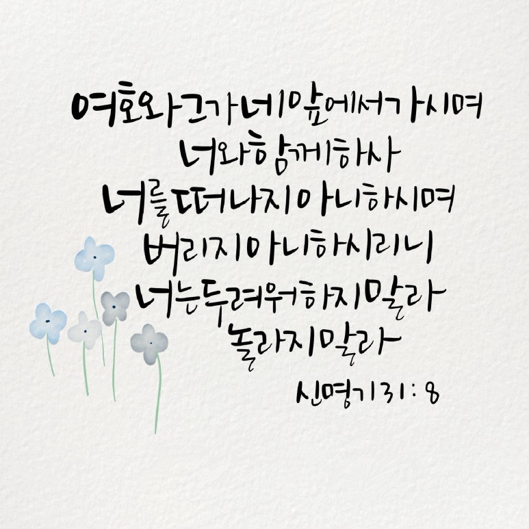 "그는 네 앞에 가시며 너와 함께 하시며 너를 떠나지 아니하시며 버리지 아니하시리니 너는 두려워하지 말라 놀라지 말라"